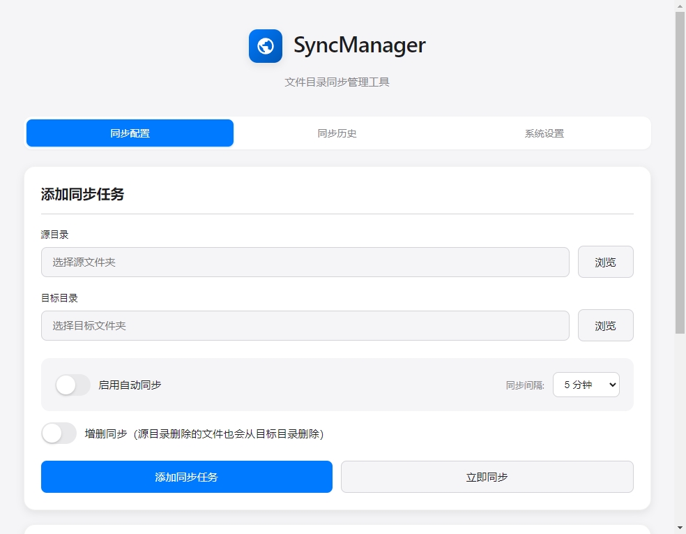 - 任务管理:支持多个同步任务,每个任务独立配置和管理